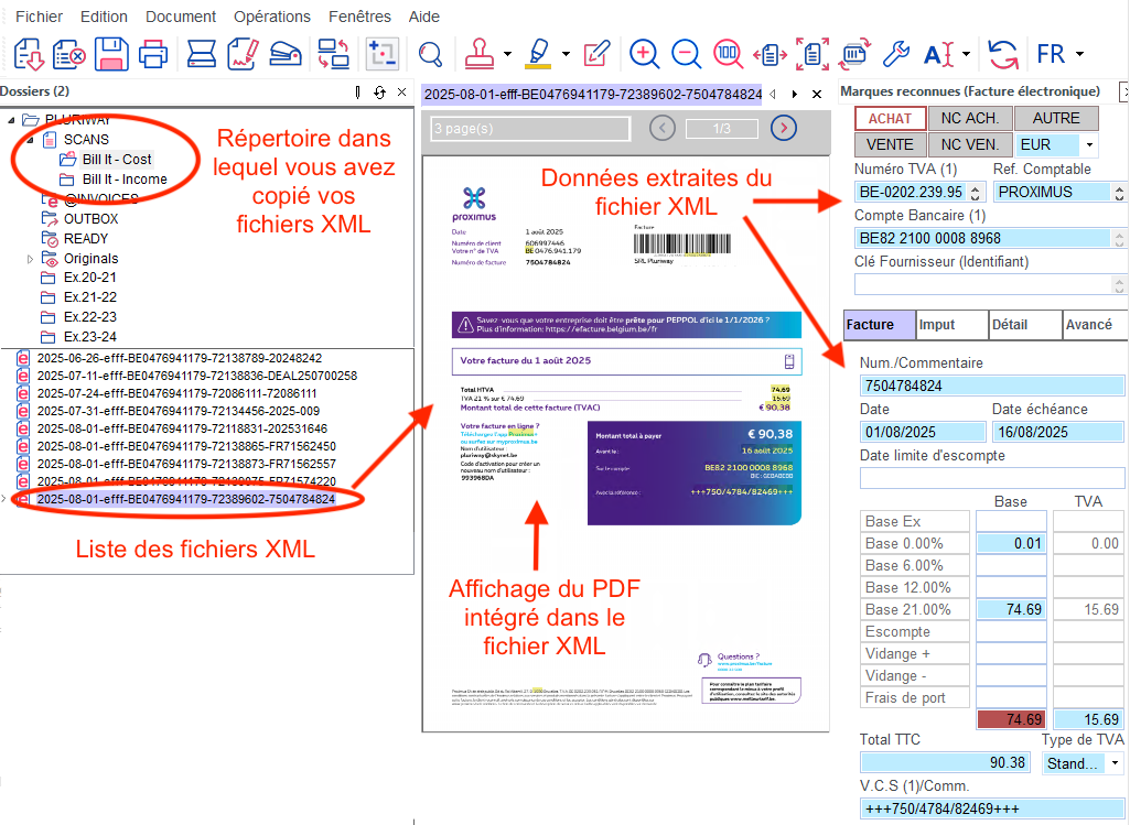 C'est Virtual Invoice qui lit les fichiers XML/UBL, donc les factures de vente que vous avez envoyées ainsi que les factures d'achat que vous aurez reçues.